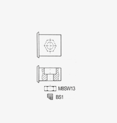 Tube end cap for square tube 20x30x1,5 mm for pin BS 1 and nut M8
