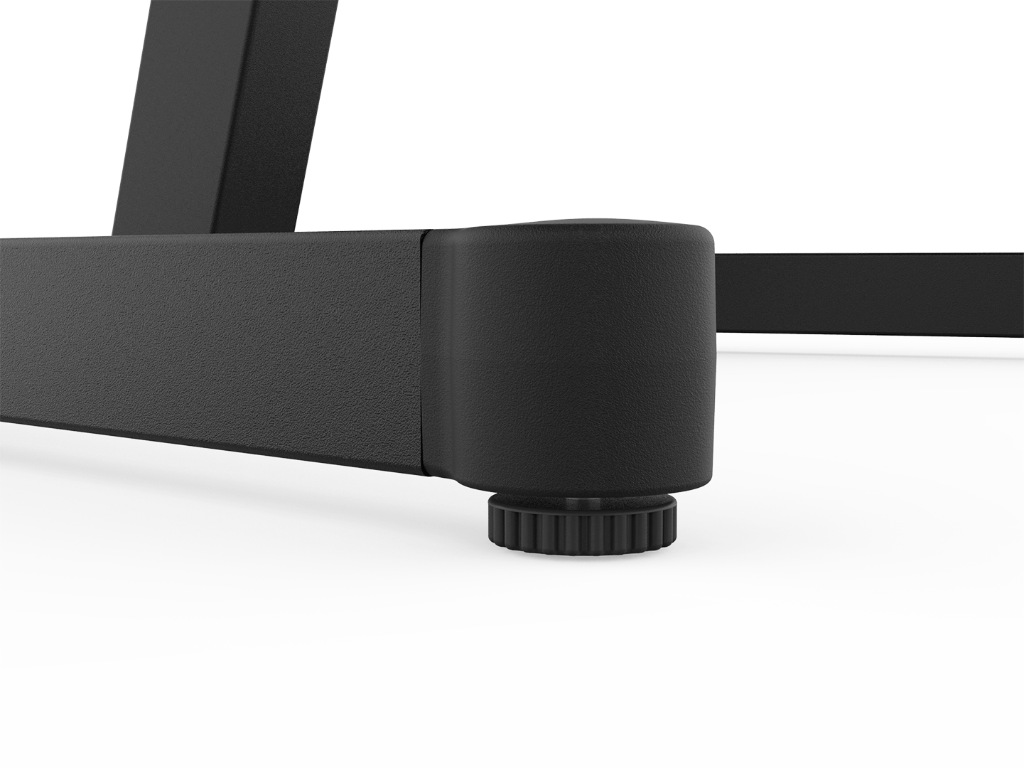 ensures space-saving storage. Levelling glides, castors and generous legroom ensure comfort and adaptability.