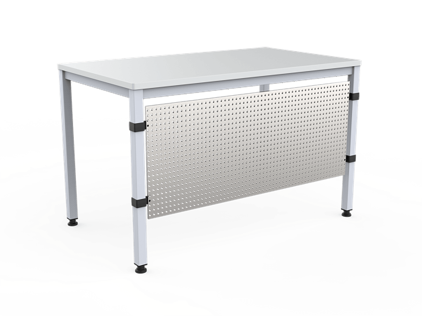 This ingenious mounting option is suitable for all square tubes measuring 40×40 mm and 50×50 mm. It enables simple installation and infinitely variable height adjustment and offers a high load-bearing capacity. Additional fastening options for support arms, panel systems, cable clamps and more can be realized.