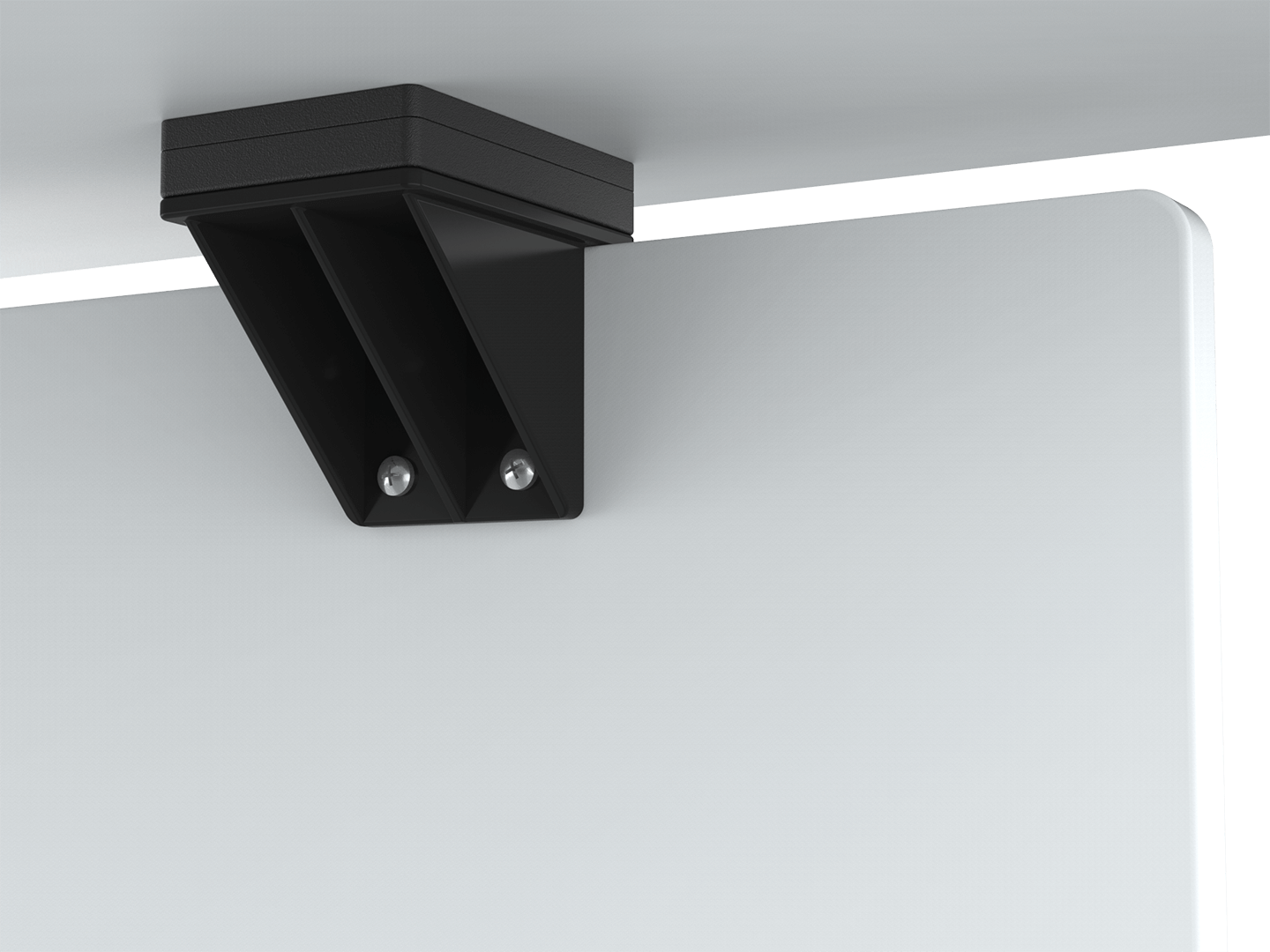 Removable under-table panel holders, which are also suitable for folding table systems, are characterized by their neutral, understated design. Thanks to a simple »click mechanism«, they are easy to attach and detach, which makes transportation, assembly and servicing much easier. With the Flex version, the panel can remain on the table thanks to an intelligent fitting system and »folds« with the table top. The holders are suitable for wooden, perforated,