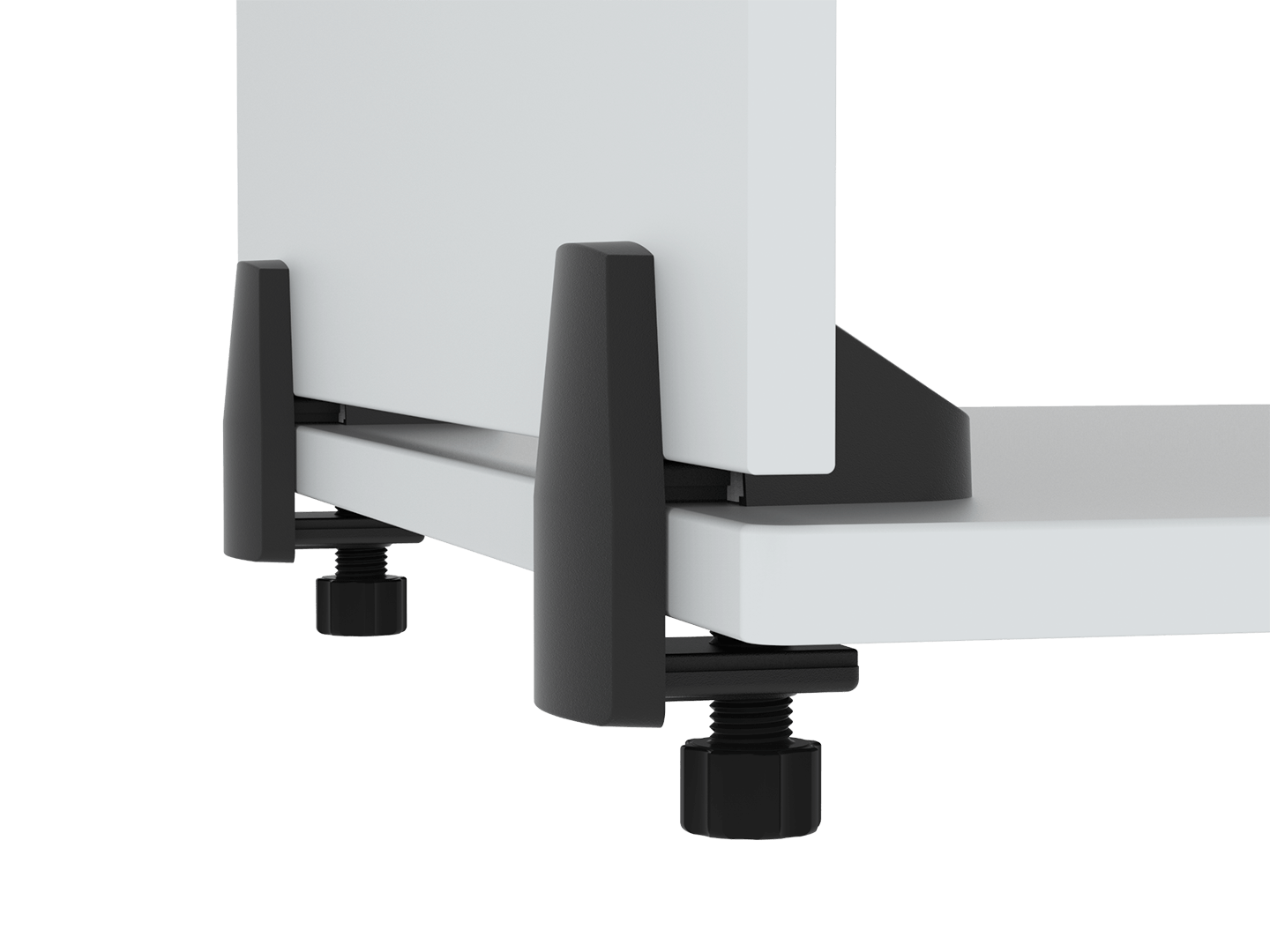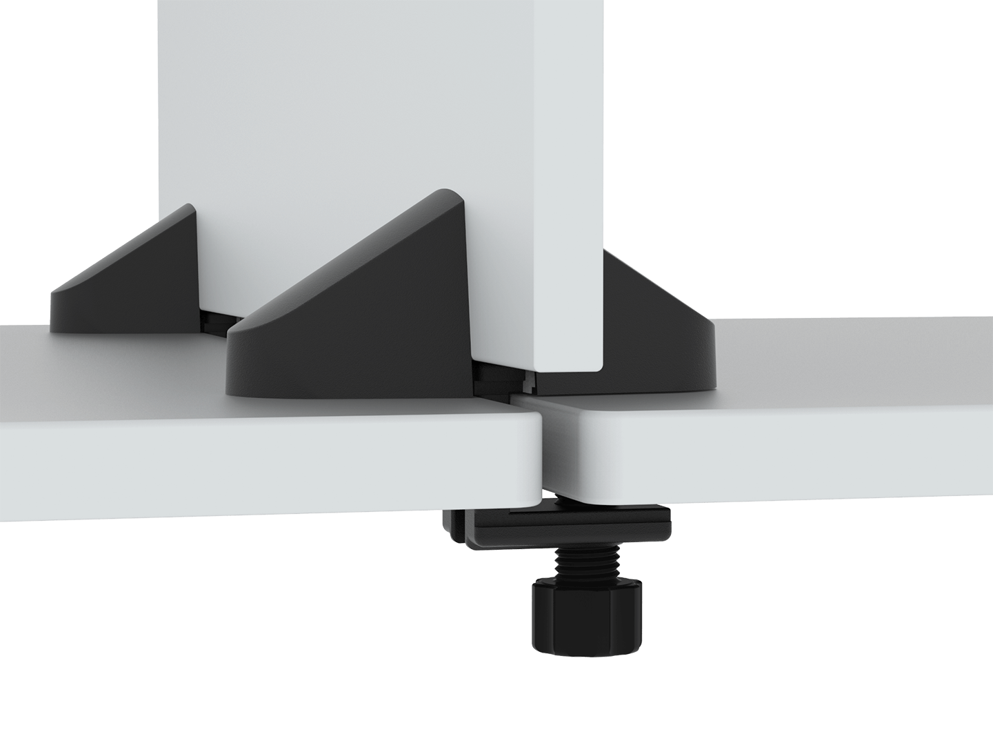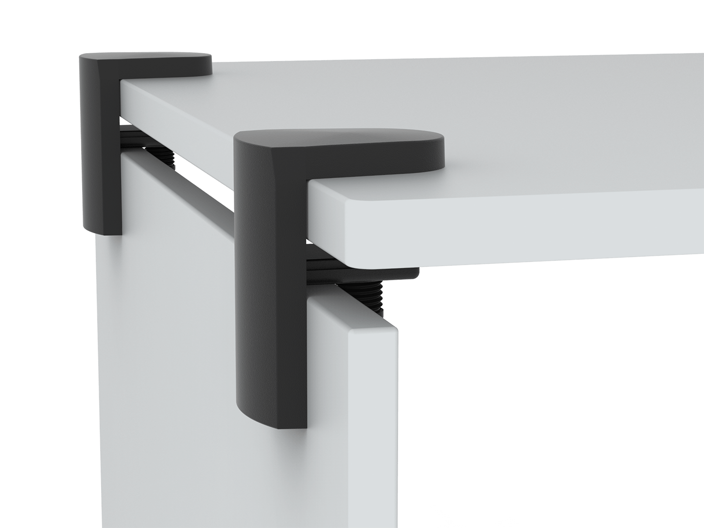 The versatile screen system impresses with its simple and neutral design. It is suitable for attaching screens to table tops, as a privacy screen or to create a third level. It can be attached above, below or between two tables, either as a midi screen, plug-in