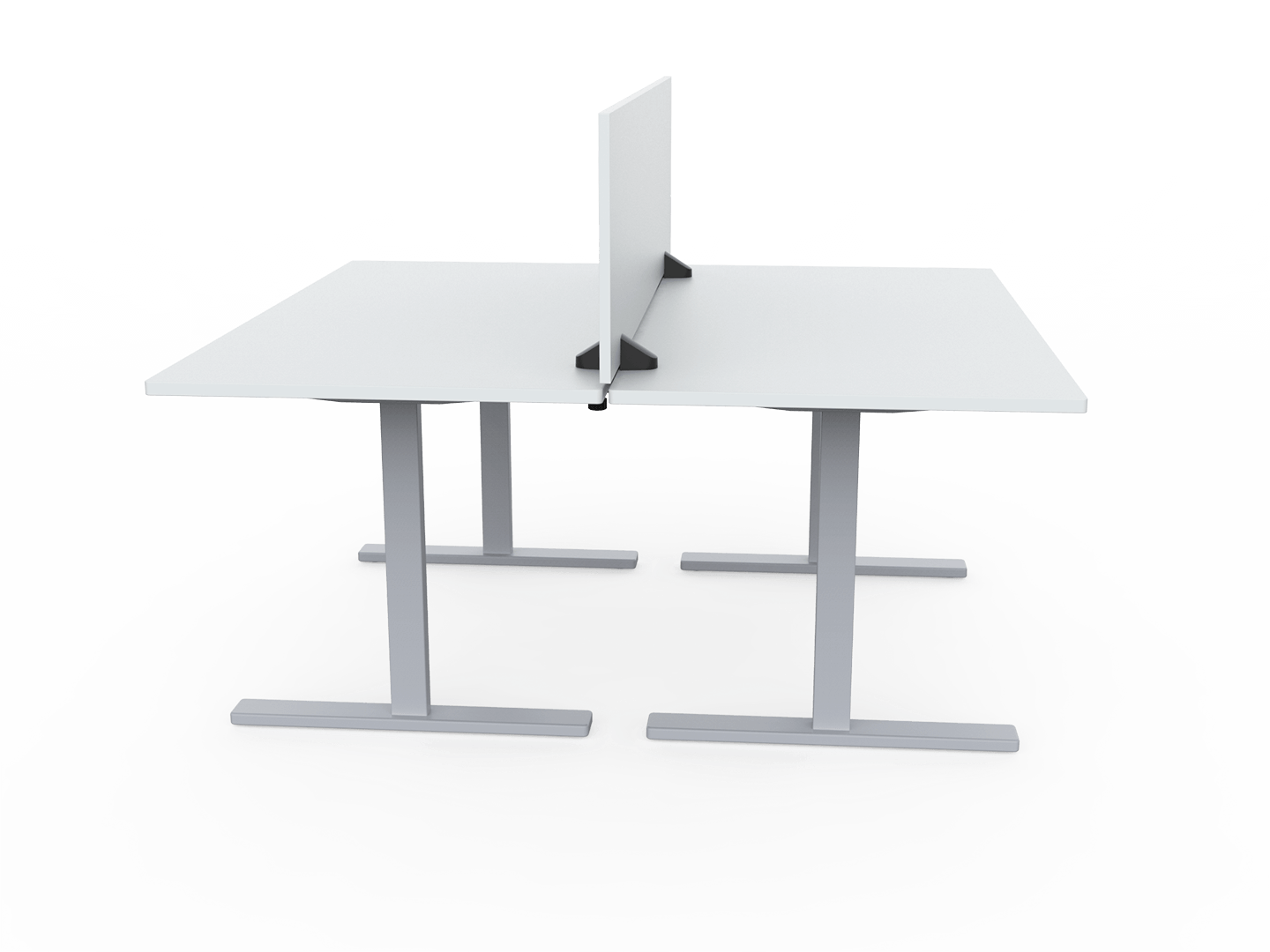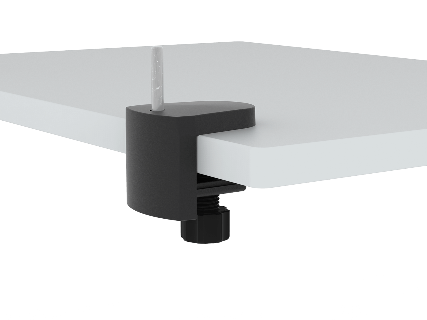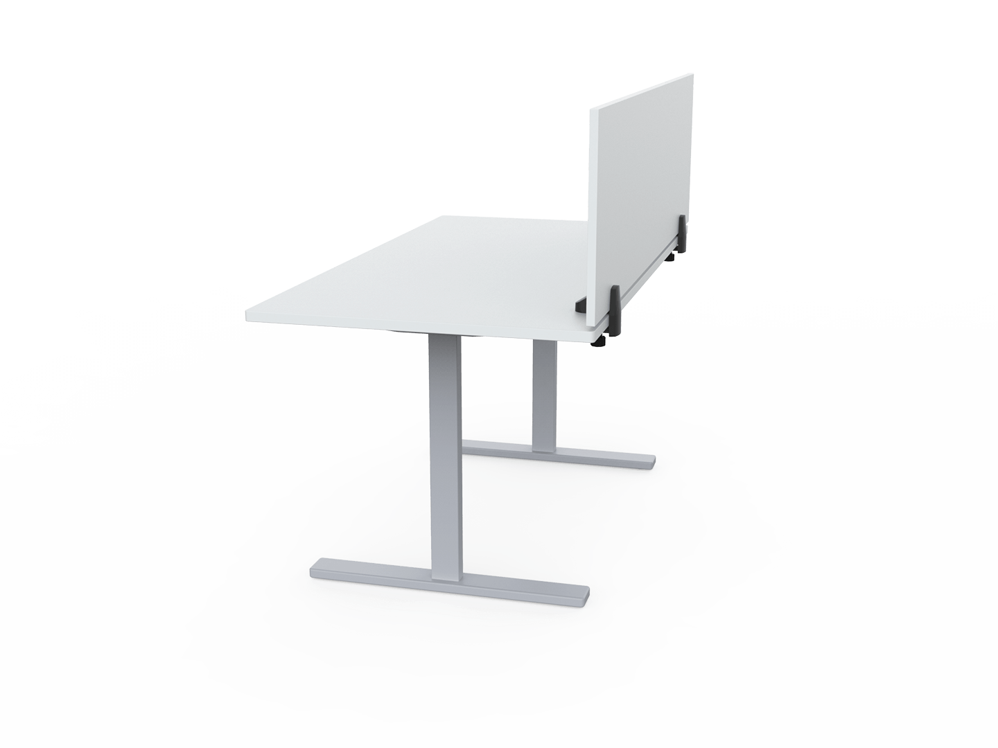 The versatile screen system impresses with its simple and neutral design. It is suitable for attaching screens to table tops, as a privacy screen or to create a third level. It can be attached above, below or between two tables, either as a midi screen, plug-in
