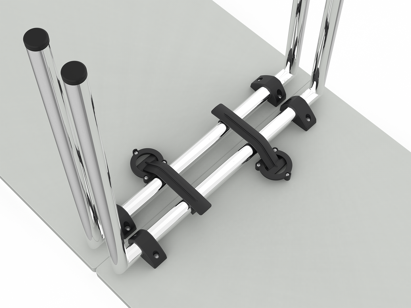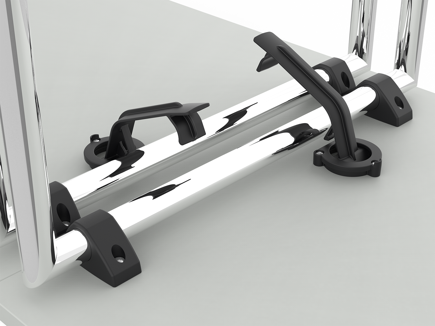 The Flex table connector allows round-tube tables to be joined quickly and without tools.