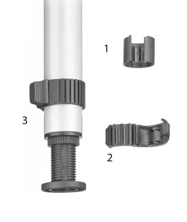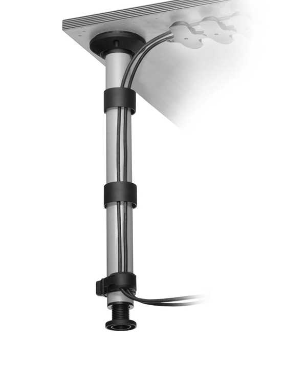 Universelles System für die Verkabelung am Tischbein. Einfache Montage ohne Werkzeug.