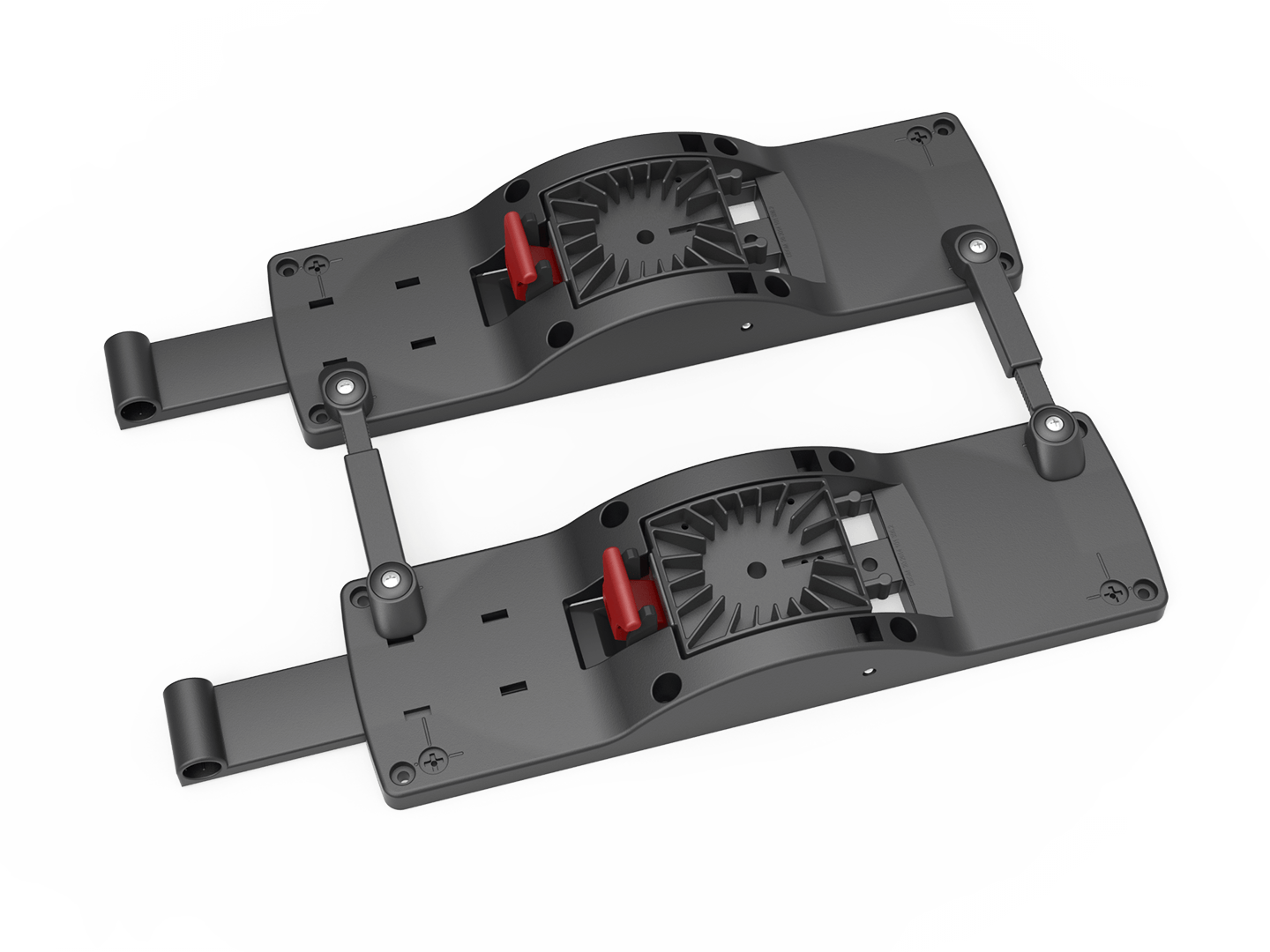 Der Klapptischadapter eignet sich für Ein- und Zweisäulengestelle. Der einfache und robuste Auslösemechanismus sorgt für leichte Bedienung und festen Stand, integrierte Auslösemechanik sowie integrierter Tischverbinder.