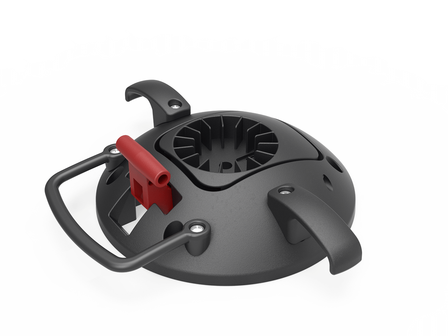 Der Klapptischadapter eignet sich für Ein- und Zweisäulengestelle. Der einfache und robuste Auslösemechanismus sorgt für leichte Bedienung und festen Stand. Optional erhältlich: Haken zum Aufhängen von Handtaschen sowie Tragegriff.
