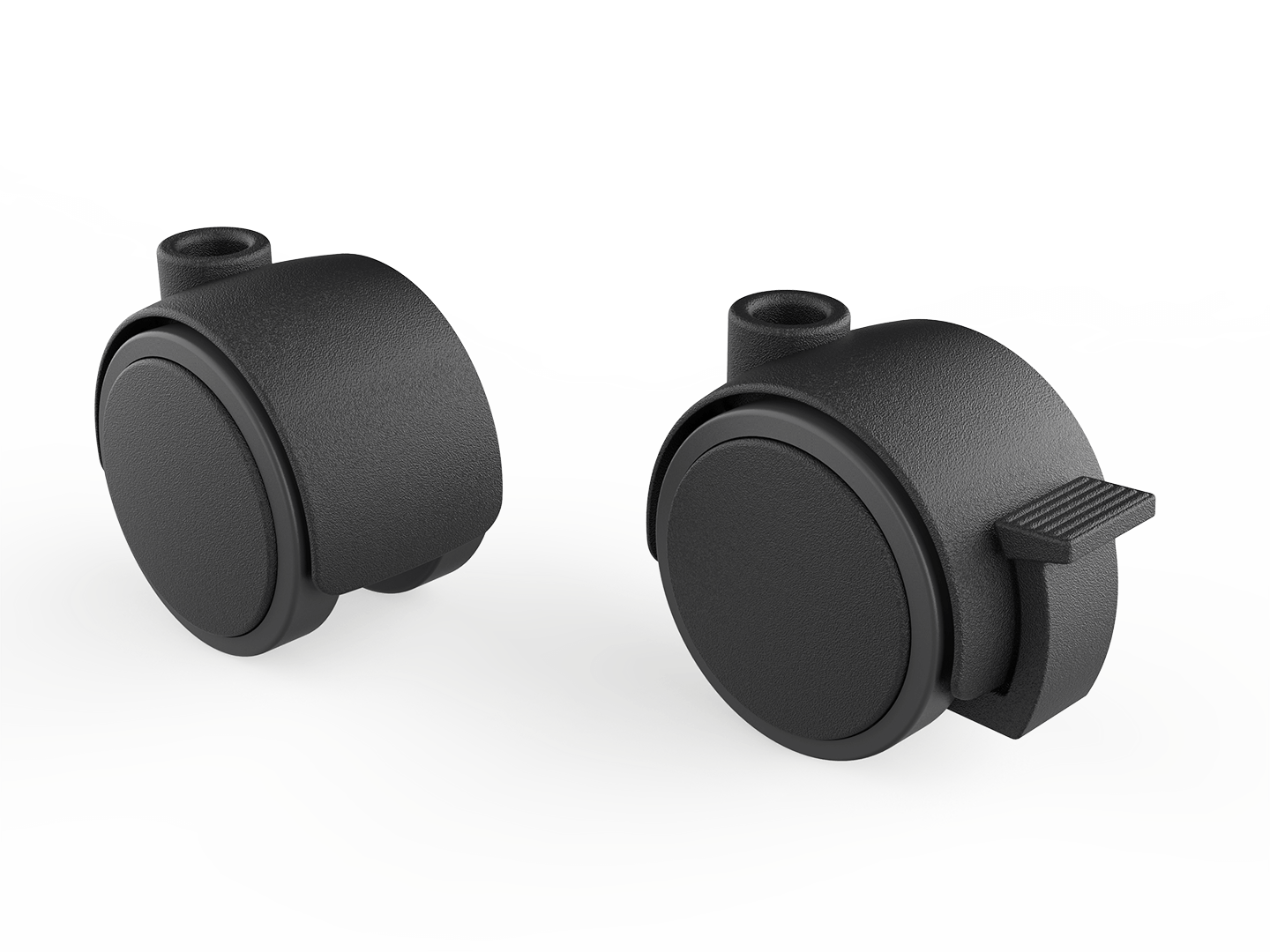 Lenkrolle Ø 50 mm aus Polyamid, mit harter oder weicher Lauffläche, mit oder ohne Feststeller.