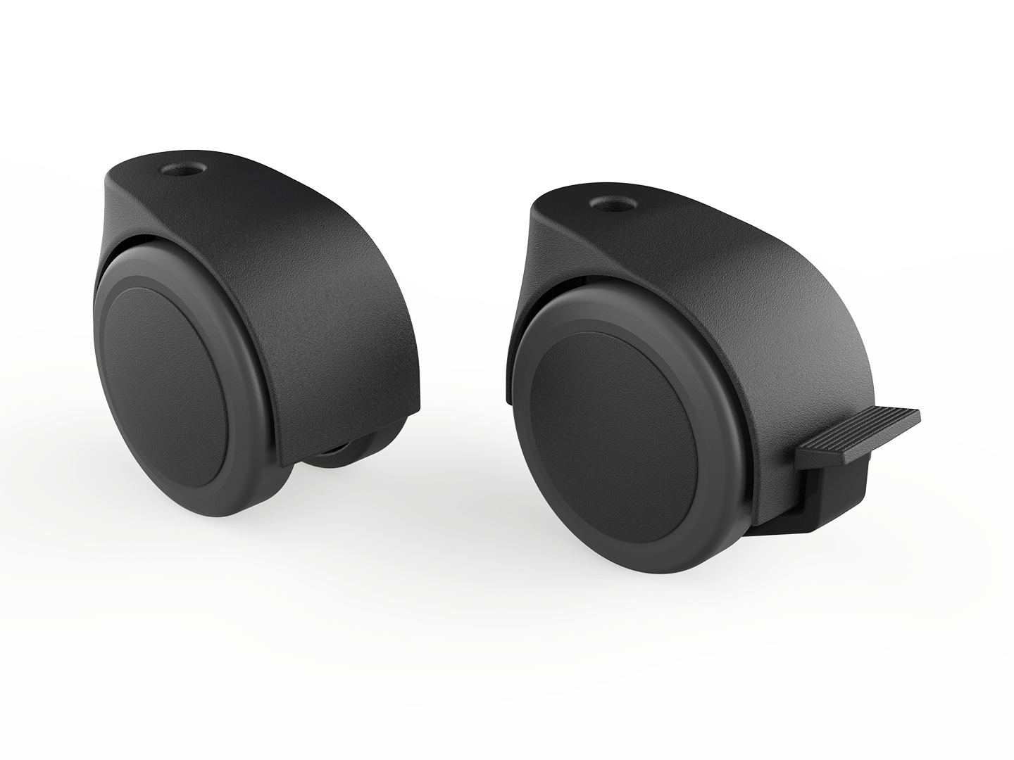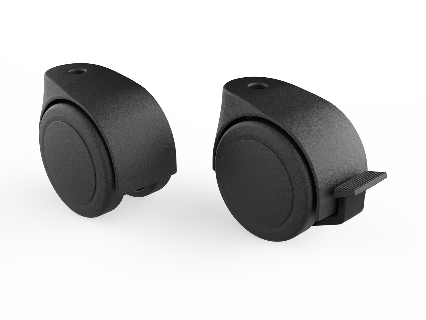 Doppellenkrolle Ø 75 mm aus Polyamid, mit harter oder weicher Lauffläche, mit oder ohne Feststeller.