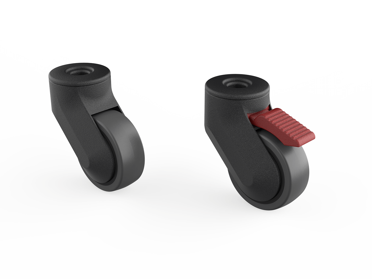 Lenkrolle Ø 50 mm aus Polyamid, mit weicher Lauffläche, mit oder ohne Feststeller.