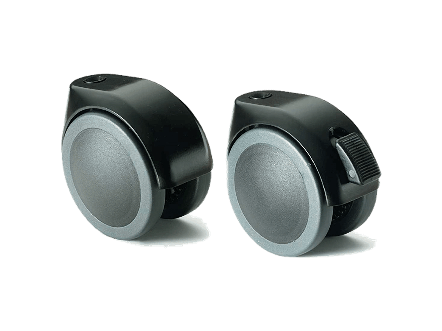 Doppellenkrolle Ø 100 mm aus Polyamid. Gehäuse aus Zink-Druckguss, mit weicher Lauffläche, mit oder ohne Feststeller.