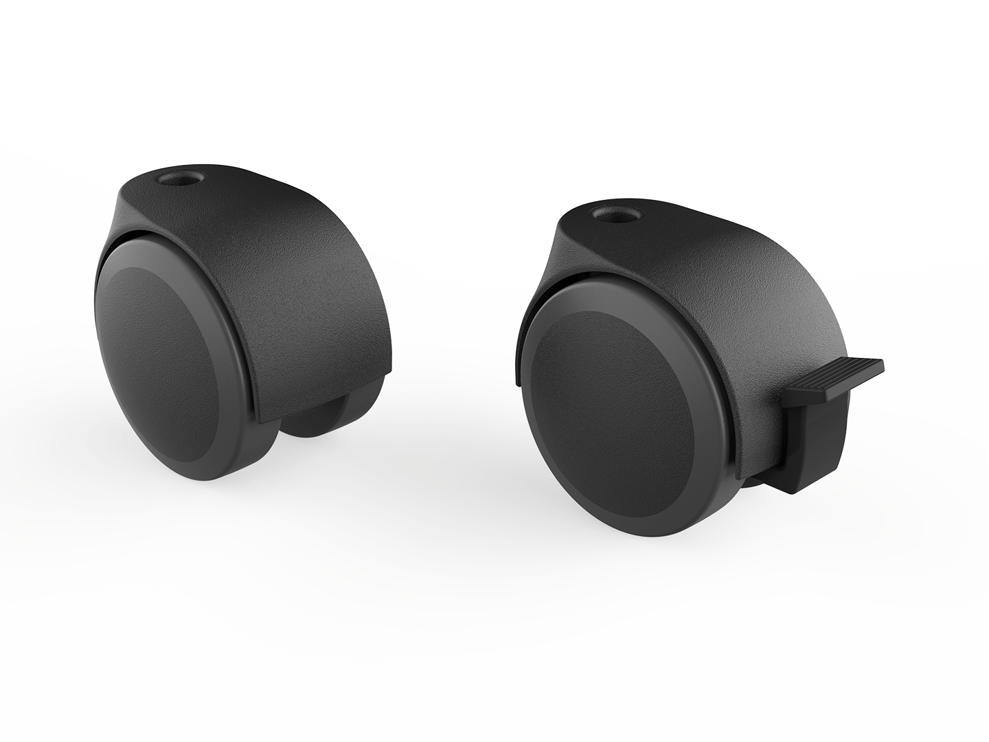 Doppellenkrolle Ø 65 mm aus Polyamid mit weicher Lauffläche, mit oder ohne Feststeller.