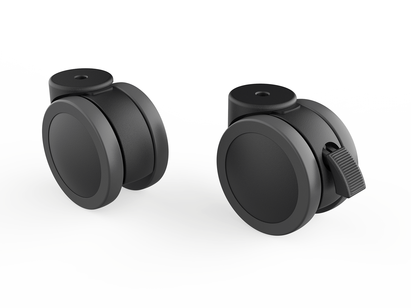 Doppellenkrolle Ø 100 mm aus Polyamid, mit weicher Lauffläche, mit oder ohne Feststeller.