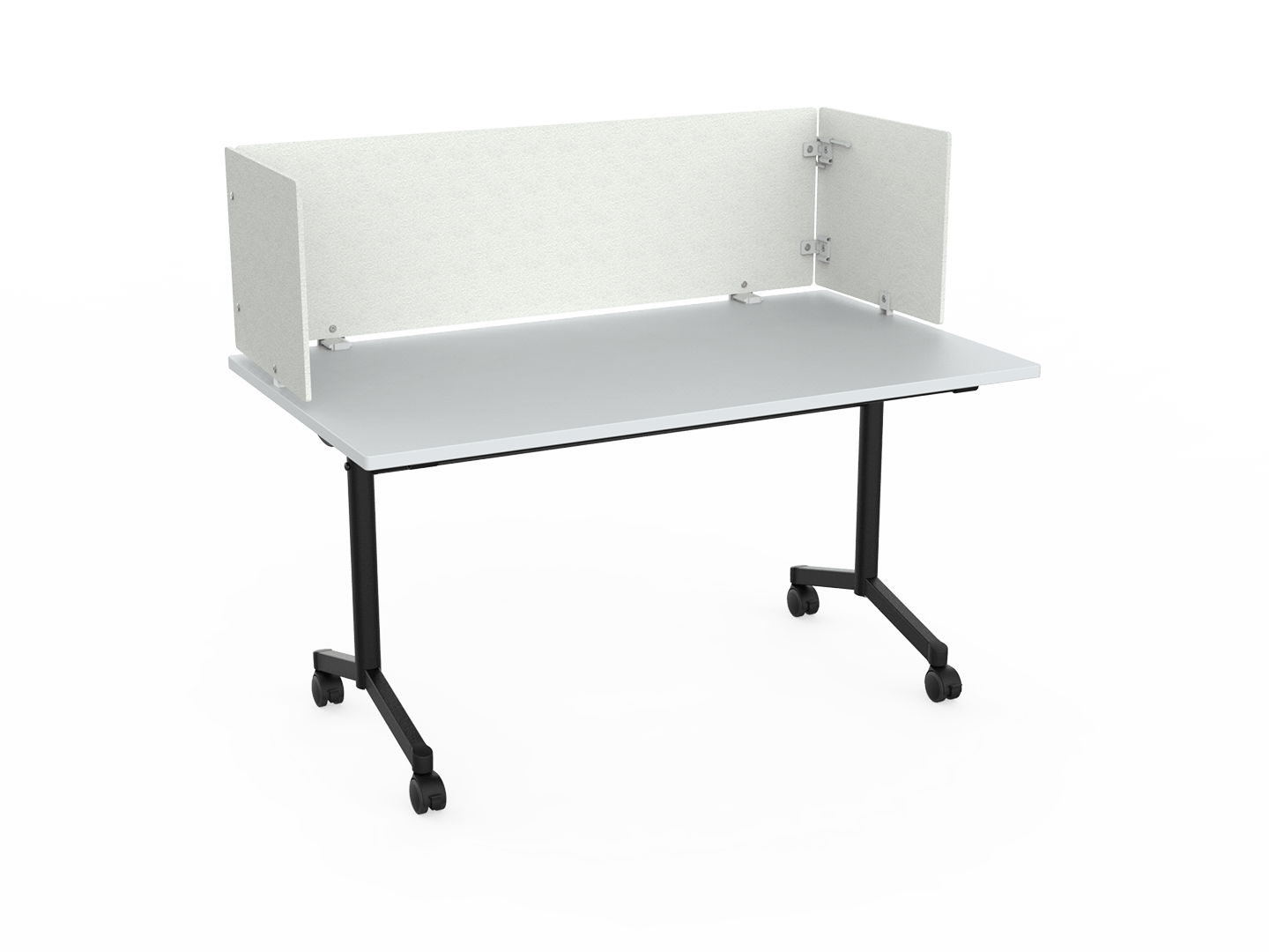 Die faltbare, mobile Akustikwand für den temporären Einsatz an allen Tischen.